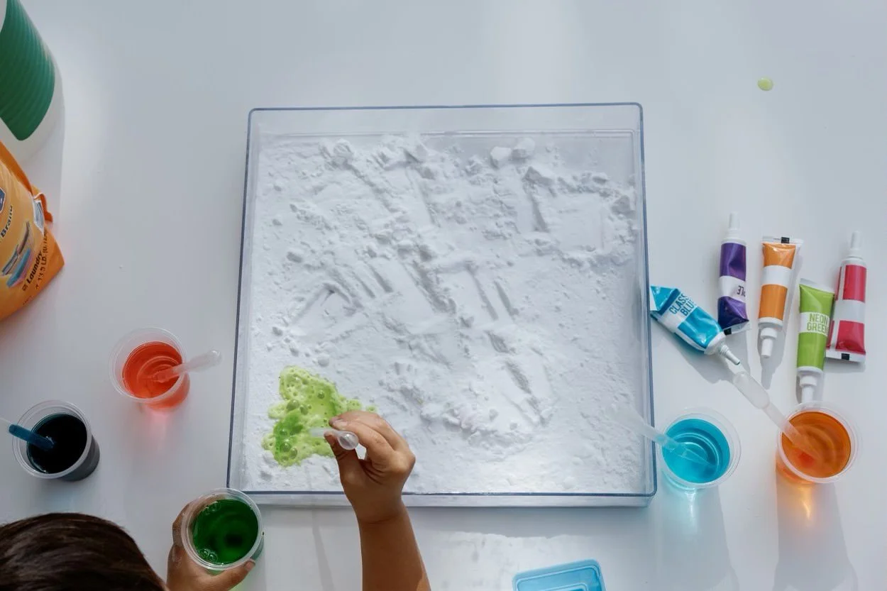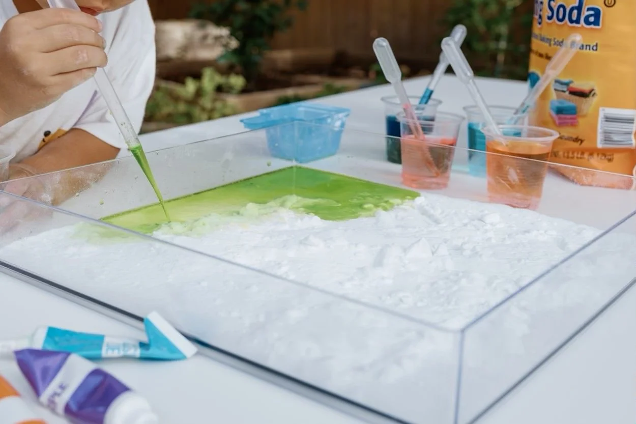 Combine science and sensory play to create captivating eruptions of color and fizz! Mix ingredients and watch the magical reactions.