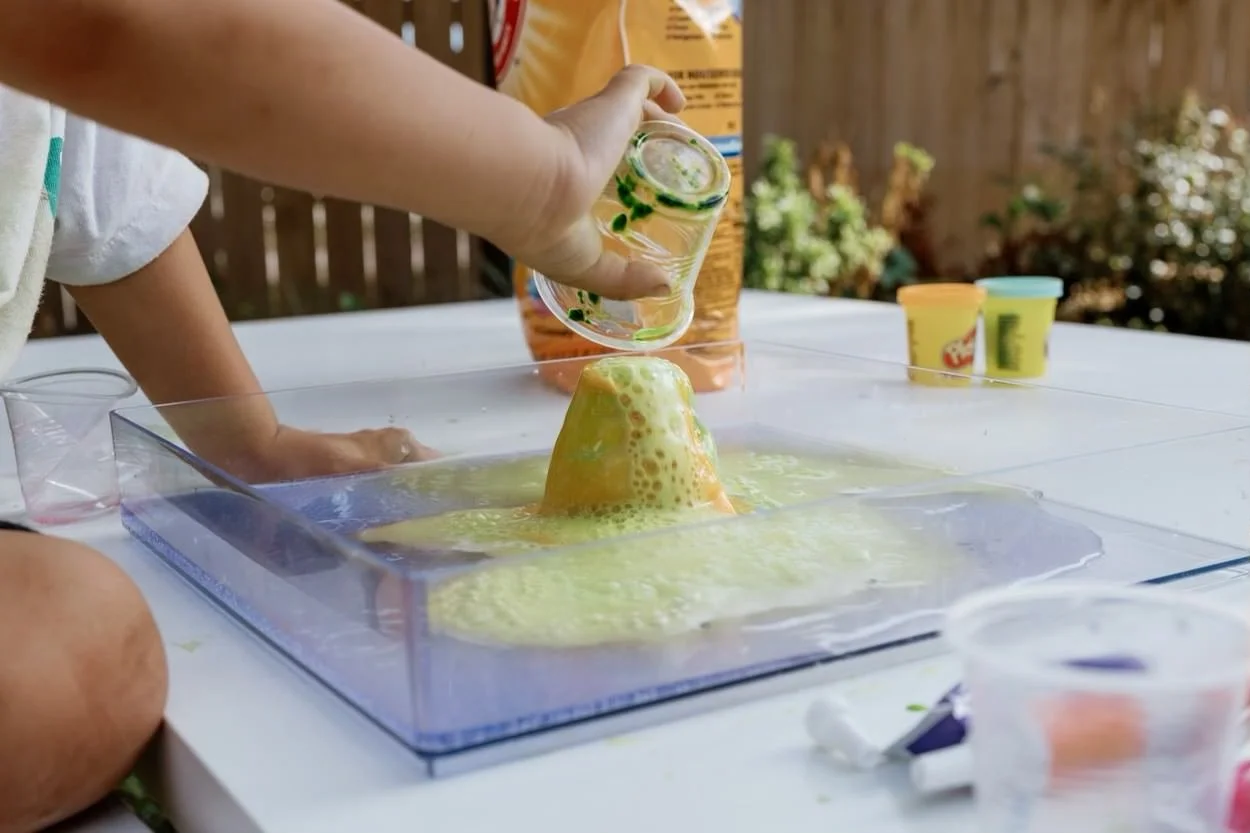 Basic Science Concepts: Experimenting with the fizzy eruptions introduces toddlers to basic scientific concepts such as chemical reactions and the release of gas, fostering an early interest in science.
